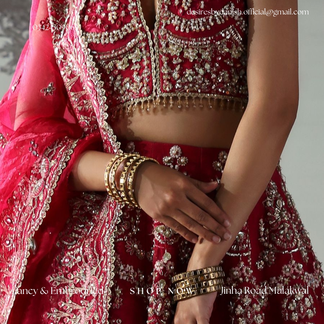 Deep crimson lehenga choli with intricate hand embellishment